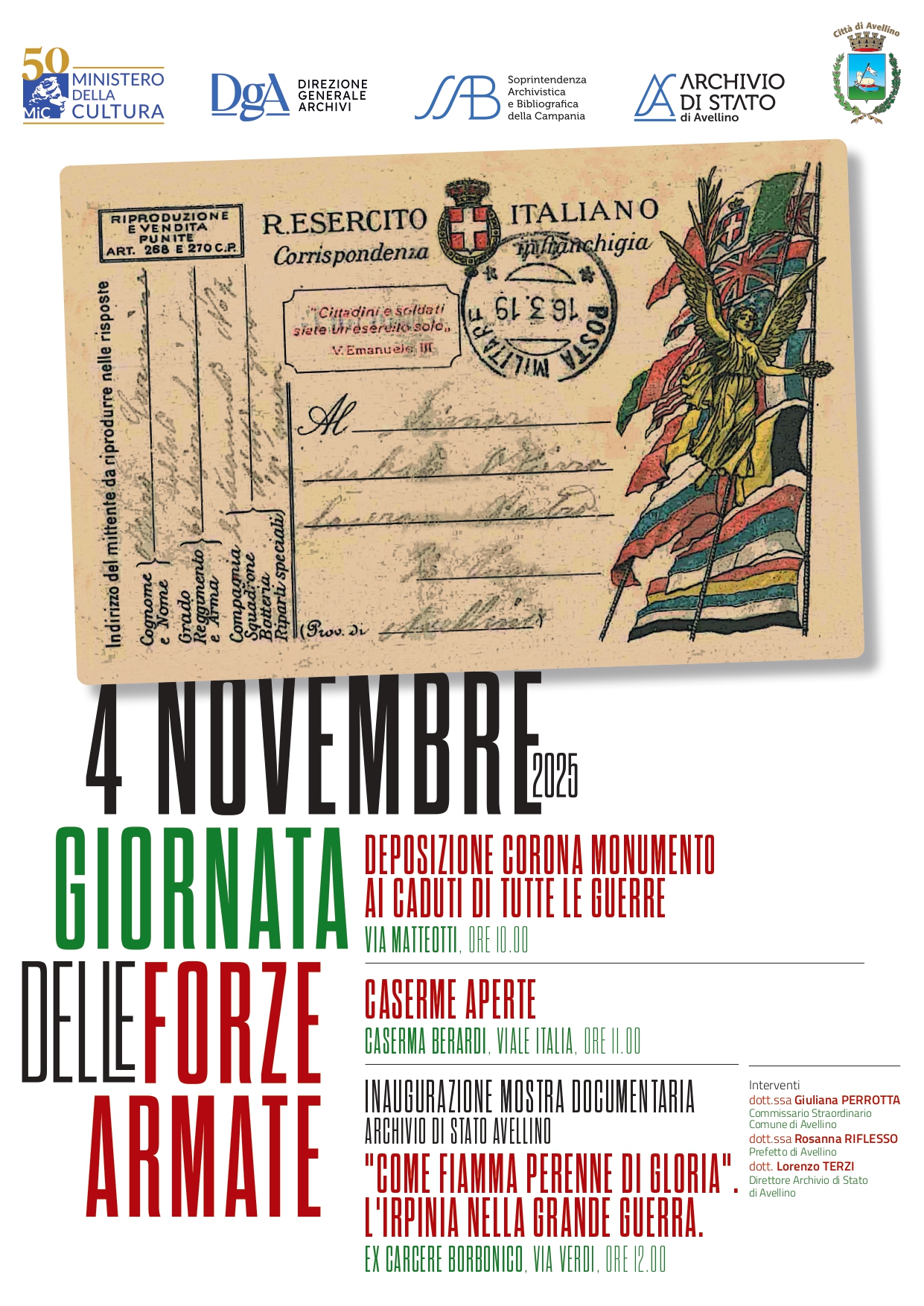 L’Archivio di Stato di Avellino prenderà parte attiva alle celebrazioni del prossimo 4 Novembre, patrocinate dal Comune di Avellino.