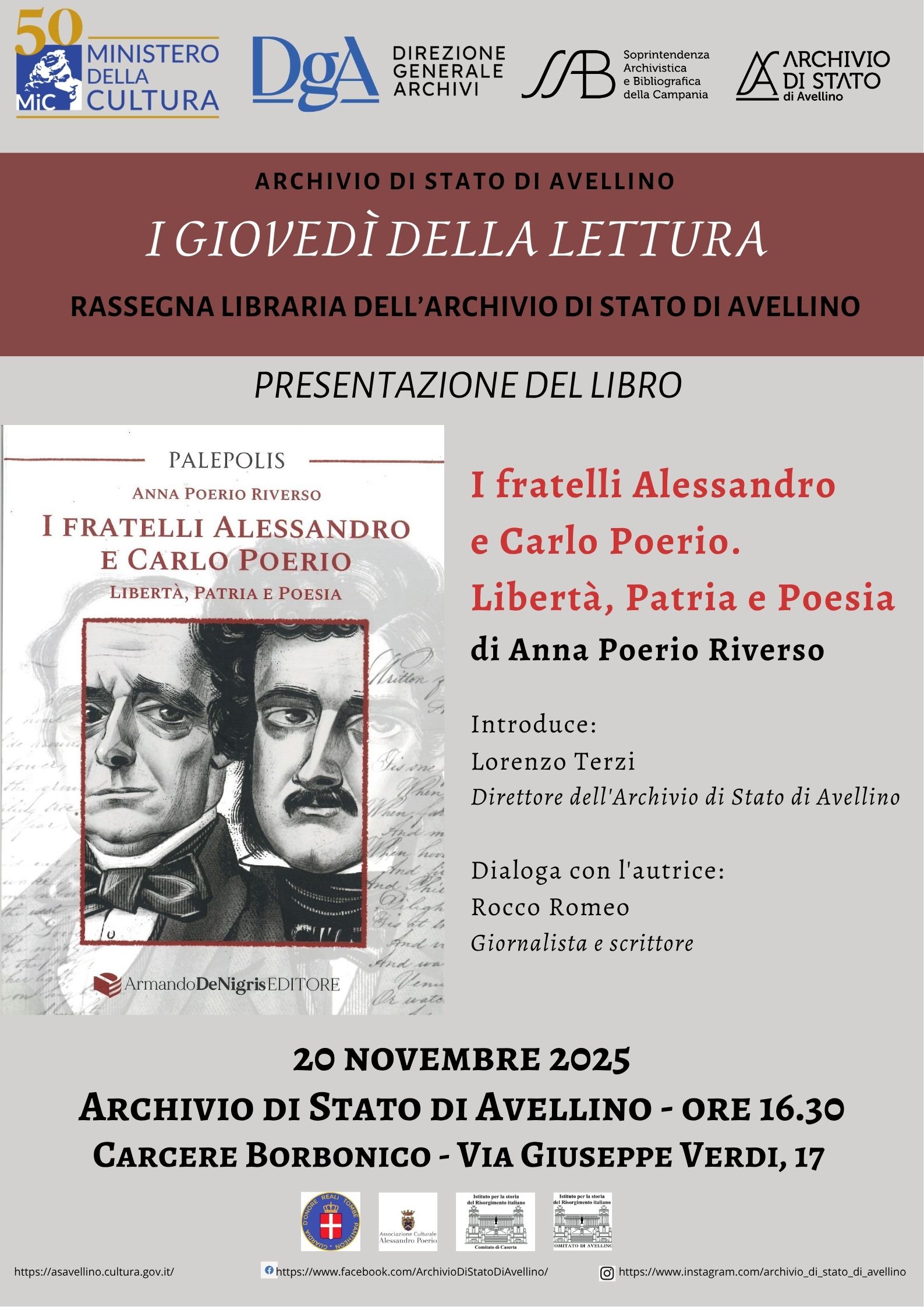 In tale occasione si presenterà il volume I fratelli Alessandro e Carlo Poerio. Libertà, patria e poesia, di Anna Poerio Riverso.