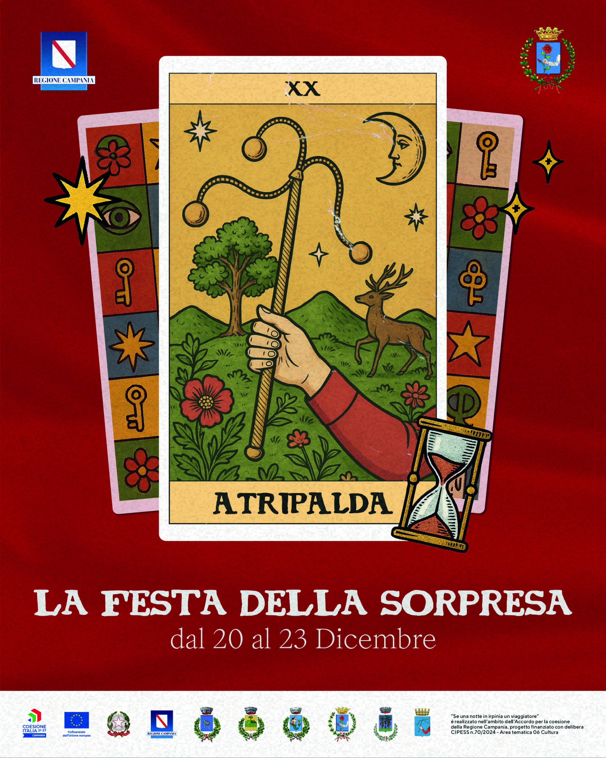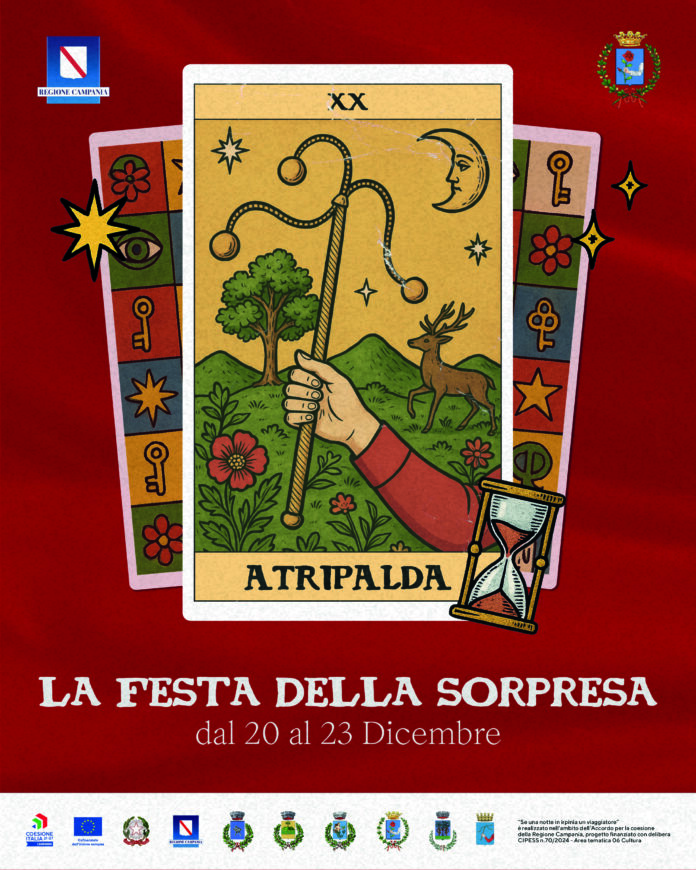 Atripalda – Continua il viaggio di “Se una notte in Irpinia un viaggiatore”, la seconda edizione del progetto culturale curato da Elementi che trasforma gli spazi pubblici irpini in palcoscenici di nuove narrazioni. Dal 20 al 23 dicembre, con “La Festa della Sorpresa”,Atripalda diventa il nuovo capitolo di questo itinerario che invita a guardare i territori con occhi diversi e a immaginare altre possibilità di valorizzazione degli spazi.